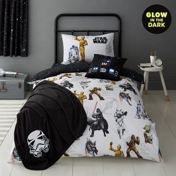 Crafted from a soft yet durable polycotton blend, this duvet cover and pillowcase set features a Disney Star Wars design that glows in the dark with your favourite characters printed onto it. Available in a choice of sizes, it is machine washable and tumble dryer friendly.