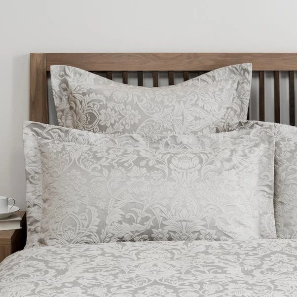 Patterned with a beautiful floral jacquard and available in a grey colourway, this pillowcase from the sumptuous Dorma range is complete with a sophisticated oxford style edging. Coordinating items are available.