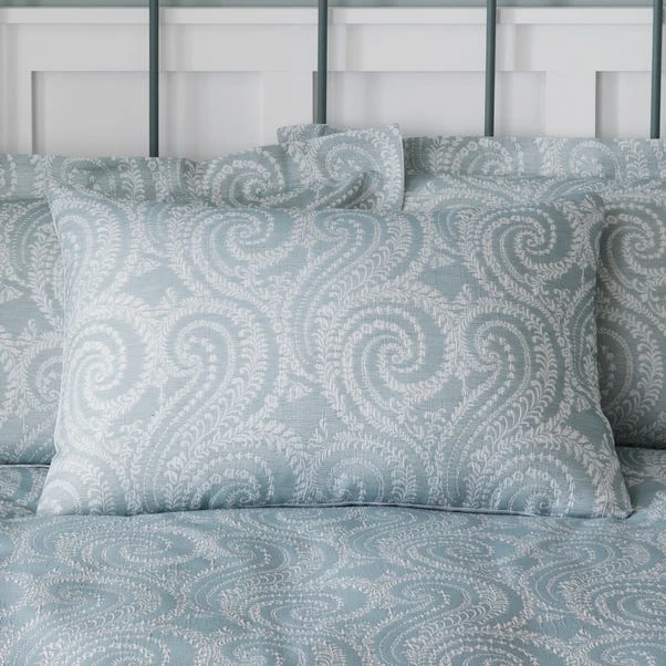 This beautifully woven jacquard bedding is timeless and classic, creating a intricate design with leaves and flowers, woven in to a soft duck egg colour pallet. Perfect for any bedroom interior this bedding is machine washable and easy to care for. This set is available in a range of sizes. Coordinating accessories available to complete the look.