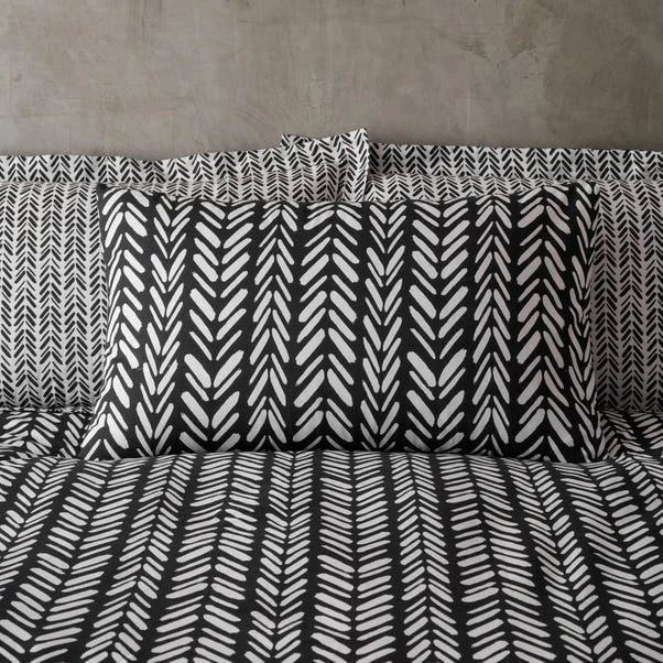 A modern mono design printed as a repeat pattern, perfect for rooms that have a simple contemporary style. On the reverse is a smaller print with a contrasting colourway. As the duvet cover and pillowcase set is made from 100% cotton, it is breathable and soft but has been made to be easy to care for.