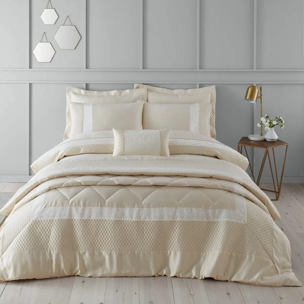 Designed in elegant shades of fine cream and ivory for a stunning and truly sophisticated look for any bedroom, our bardot duvet cover and pillowcase set combines layers of different textures paired with soft diamond quilted detailing. Machine washable for easy care with coordinating items available to purchase separately.