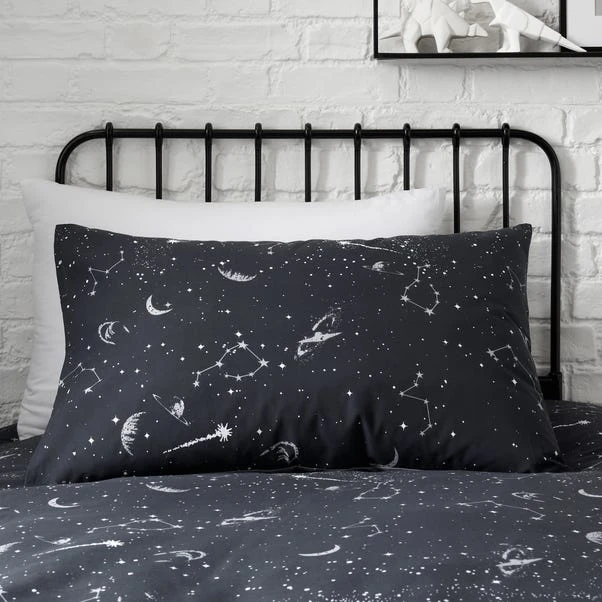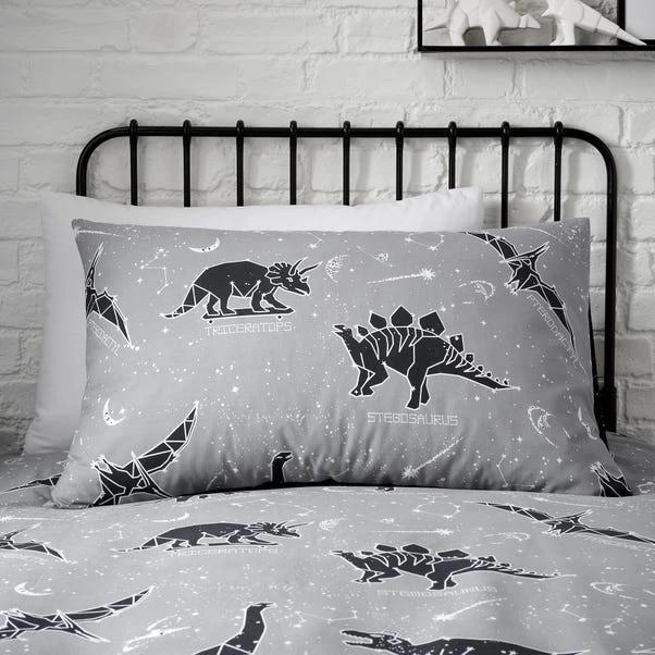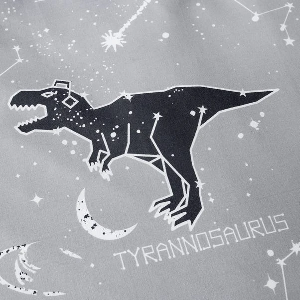 Boasting a colourful dinosaur print, this duvet cover and pillowcase set is perfect for adding a touch of adventure and fun to your child’s bedroom. With a reversible design you can chose between two designs. This bedding set is easy to care for and is machine washable. This duvet cover and pillowcase set is available in a range of sizes and other matching bedding and curtains are also available.
