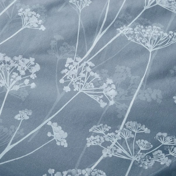 The Cow Parsley duvet cover and pillowcase set features a beautiful blue floral design which will add a stylish look into any room. Swap up your bedroom look quickly by turning the cover over to reveal the design fashioned with an alternative colourway. Crafted from a polycotton material, the set is easy to care for and is fully machine washable. The duvet cover set has been finished with a recycled plastic button closure which helps secure the cover around the duvet whilst in use.