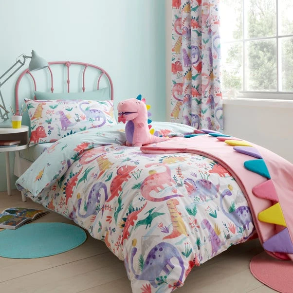 For dinosaur lovers, this duvet cover and pillowcase set adds a splash of colour to the bedroom, featuring their favourite dinosaurs. It has been crafted from a quality polycotton fabric that offers a soft handle with durable and easycare properties. Style with our dinosaur bedroom accessories to complete the look.