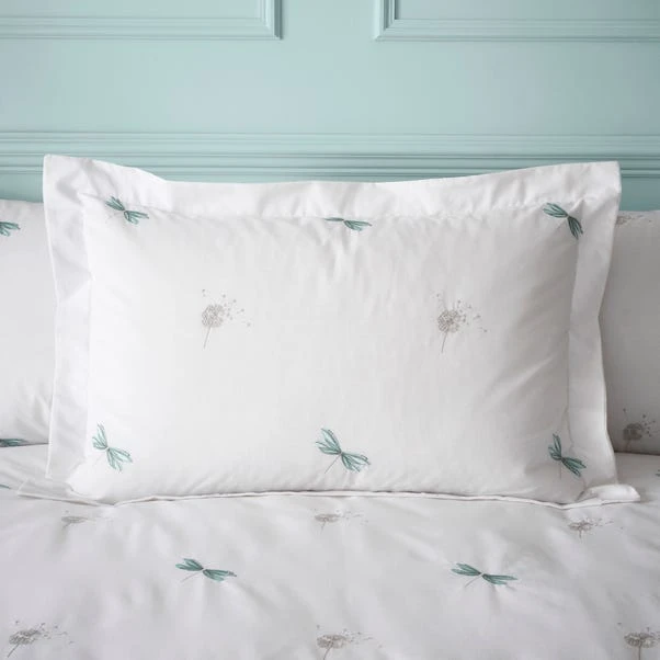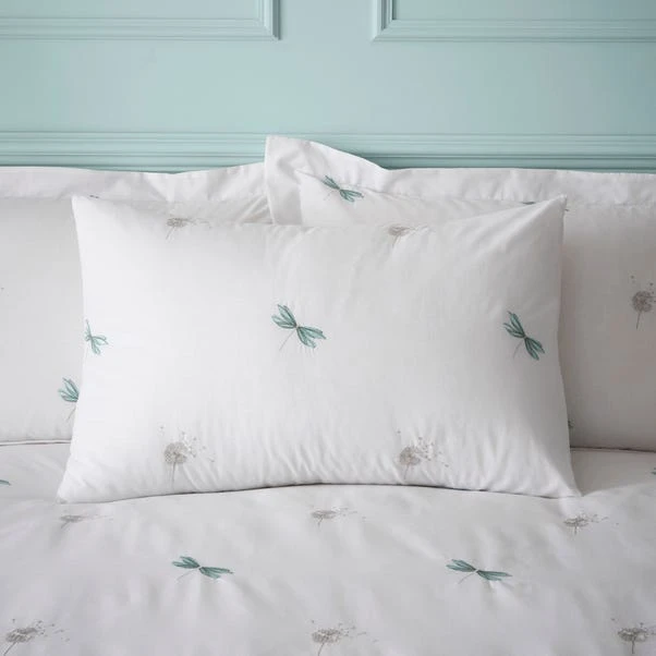 Embellished with detailed embroidered dragonflies on contrasting white, this duvet cover and pillowcase set adds a delicate charm to your bedroom. This bedding set has been made from soft and durable polycotton to give you comfort when sleeping. The reversible style allows you to change you bedding whenever you desire.