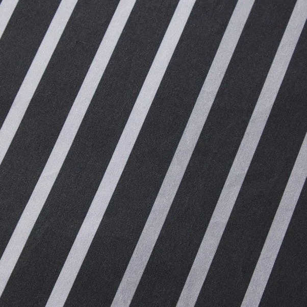 A black and white geometric design fills this duvet cover and pillowcase set. The contemporary colourway is bound to give your bedroom a modern look and feel. Crafted from a polycotton material, the set is easy to care for and is fully machine washable. The duvet cover set has been finished with a recycled plastic button closure which helps secure the cover around the duvet whilst in use.