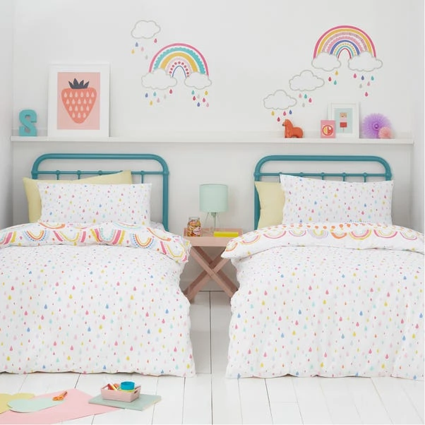 Bosting a colourful, geometric pattern, this twin pack of duvet covers and pillowcases is perfect for sleepovers or for having a spare duvet cover and pillowcase available. This set is made from 100% cotton making it super soft and the duvet overs are also reversible so you have endless options of patterns. This set is machine washable and other matching bedding and curtains are available.