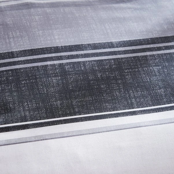 Our Ellis duvet cover and pillowcase set has been decorated with a bold stripe design with a subtle texture, finished in tonal shades of both grey and black. Monochrome in pattern with a fully reversible design for ease of colour change, this duvet cover set is machine washable for easy care with coordinating items available to purchase separately.