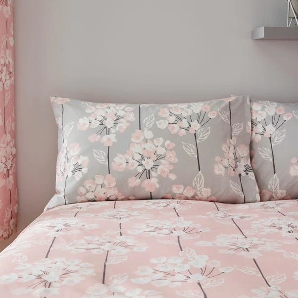 Our reversible Erin duvet cover and pillowcase set comes in shades of on-trend blush and grey, decorated with a crisp white all-over floral pattern that will add a touch of femininity to your bedroom. Crafted from a quality polycotton blend it is super soft to the touch and breathable for all year-round comfort. This beautiful set is available in a range of sizes to suit your bedroom.