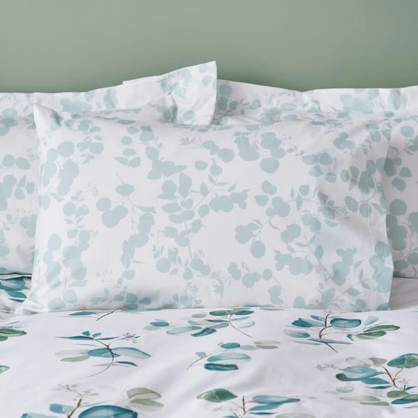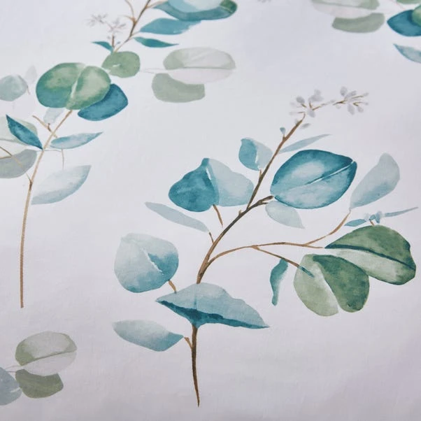 Add a fresh look into your room with this elegant Eucalyptus leaf print design duvet cover and pillowcase set. The front features a beautiful green and blue design while the reverse offers a muted colour option for alternative styling. Crafted from a polycotton material, the set is easy to care for and is fully machine washable. The duvet cover set has been finished with a recycled plastic button closure which helps secure the cover around the duvet whilst in use.