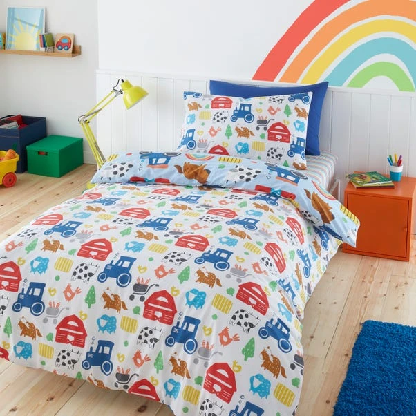 Does your little one love farm animals? Then why not treat them to this super cool and colourful reversible designed Farmyard duvet cover and pillowcase set? This set has been made from recycled polycotton material in a 144 thread count which is machine washable. It’s finished with a secure button closure to give your little one a a peaceful and uninterrupted night sleep. What more could you ask for?