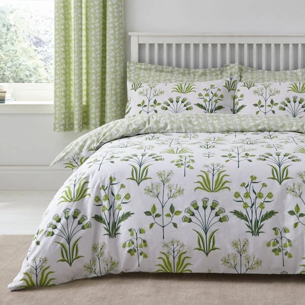 Boasting a green arts and crafts-inspired floral design, this duvet cover and pillowcase set adds a beautiful touch to your bedroom. Made from 100% cotton this bedding set is soft and durable. This bedding set is machine washable. Other matching bedroom accessories are also available.