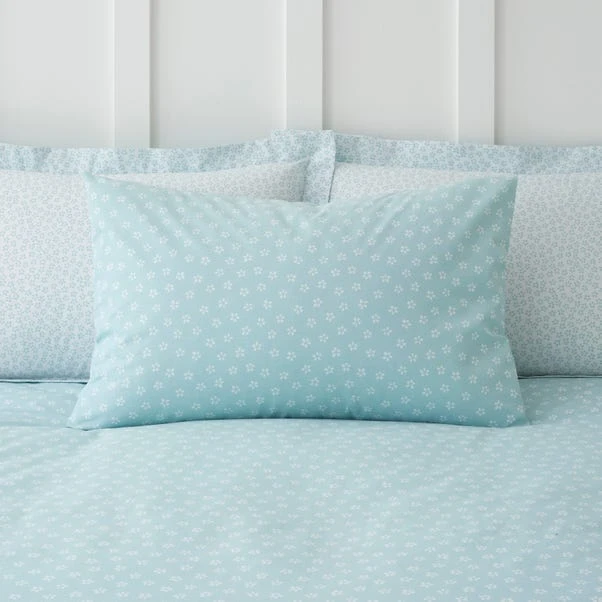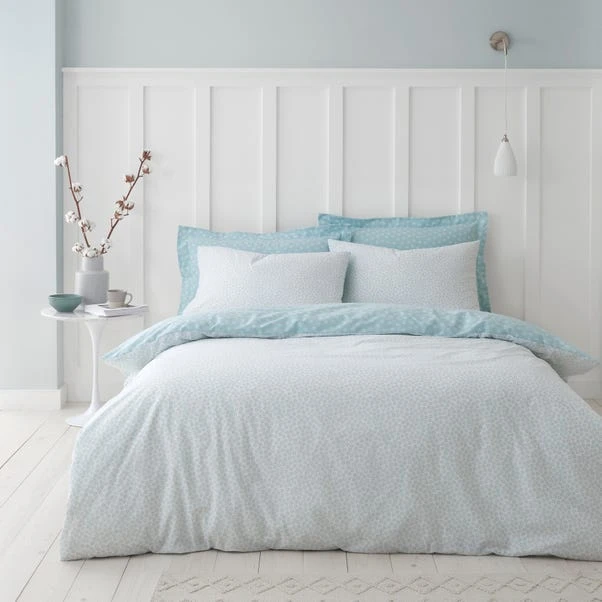 Make your bed bloom with our Florrie Ditsy duvet cover and pillowcase set. The front side features small white flowers on a stunning mineral colour backdrop. Quickly swap up the style of your bed by flipping to the reverse that is covered in smaller mineral coloured flowers on a lovely white background. Made from polycotton, this duvet cover set has easy care qualities and is fully machine washable.