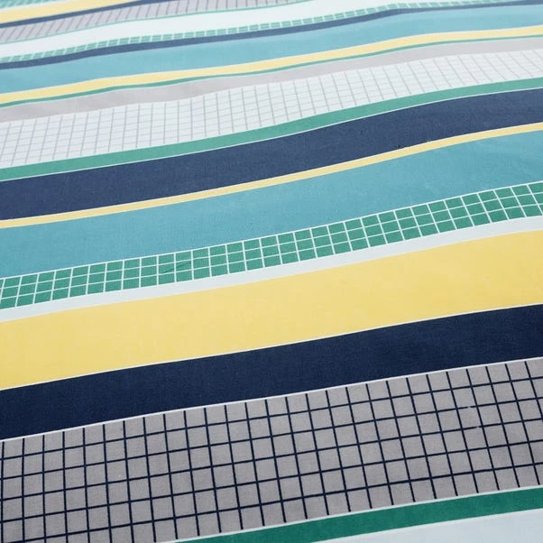 Machine washable for easy care, this eye-catching geometric and stripe designed reversible bedding comes as a twin pack in sizes cot bed, single (both include two pillowcases) and double (includes four pillowcases). Coordinating geometric design products available including curtains and fitted sheets.