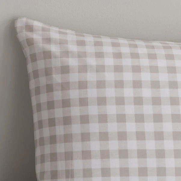 Crafted from pure cotton for breathable comfort, this printed gingham duvet set offers a timeless style update in a versatile mushroom colour. The duvet cover is then finished with a button fastening to secure the cover while in use. Team up with matching blackout curtains for a calm and coordinated look.
