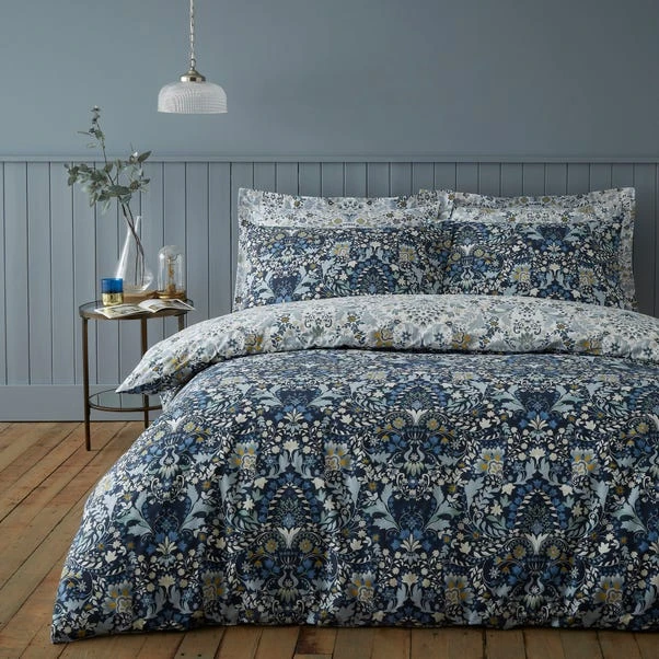 Hardick is a beautiful classic but contemporary floral design in a deep midnight blue colourway with flashes of ochre. Flip the cover and pillowcases over to reveal a contrasting reverse which allows you to choose a different style to suit your room. Breathable and soft, this duvet cover and pillowcase set is crafted from 100% cotton and can be machine washed.