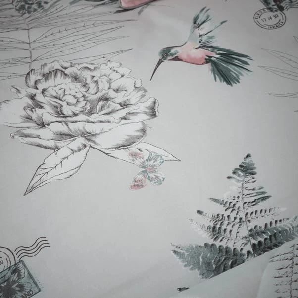 Decorated with a pretty floral design with scattered hummingbirds and butterflies, this Heavenly Hummingbird duvet cover set features blush accents and a fully reversible design for an easy colour change. Finished with beautifully piped edges, this vintage feel bedding set is crafted from a soft polycotton and is machine washable for easy care. Coordinating accessories are available.