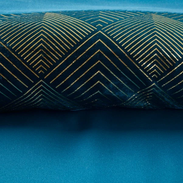 Inga is a design that features a beautiful printed velvet panel. This duvet cover and pillowcase set comes in a solid peacock colour and glamorous gold details within the velvet panel. A 100% polyester composition gives the material a soft hand feel. Fully machine washable.