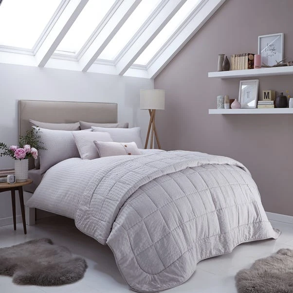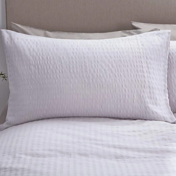 This grey Oxford pillowcase offers a 300 thread count and is finished with a printed seersucker design.
