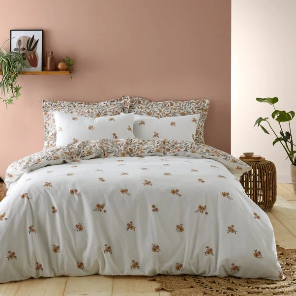 Add a contemporary touch to your bedroom with our Louella Floral Duvet Cover and Pillowcase Set which is designed in an Autumnal terracotta colourway. This bedding set has a reversible floral design so you can alter between two styles whenever you fancy a quick switch up. Beautifully crafted from a polycotton blend, this bedding set is soft, comfortable and durable. Complete with a secure button closure to give you an uninterrupted night sleep.