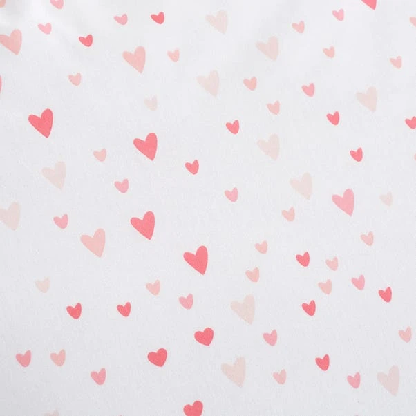 Add some extra love to your child’s bedroom with this Love Hearts duvet cover and pillowcase set. Crafted from a soft and cosy blend of recycled polycotton in a 144 thread count which is machine washable for convenient cleaning. Designed in a reversible style with large love hearts print on one side and smaller love heart print on the other, giving you the option to switch between the two whenever you desire. It comes complete with a matching reversible pillowcase and is finished with a secure button fastening for an uninterrupted night sleep. Pair this set with the coordinating fitted sheets available.