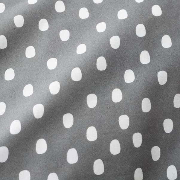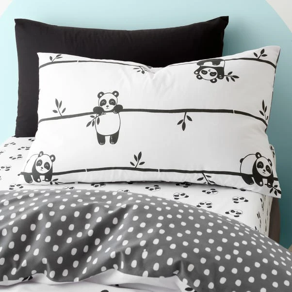 Upgrade your childs bedroom look with this super cool mono panda print duvet cover and pillowcase set. It’s been made from recycled polycotton in 144 thread count which is machine washable too. Cleverly crafted with a reversible design with a polka dot print on one side and a panda print on the other, giving your child a 2-in-1 bedding style. It comes complete with a matching pillowcase and is finished with a secure button closure for an uninterrupted night sleep. Coordinating fitted sheets are also available for a complete look.