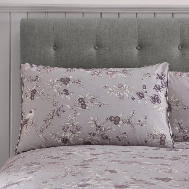 Boasting a beautifully unique oriental bird design on a stylish mauve background, this bedding set is perfect for adding a stylish touch to your bedroom. Easy to accessories with cushions and throws, this bedding compliments any bedroom interior. This bedding set is machine washable and matching oxford pillowcases are also available.