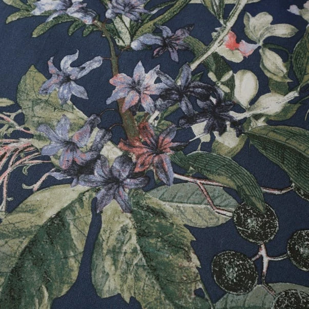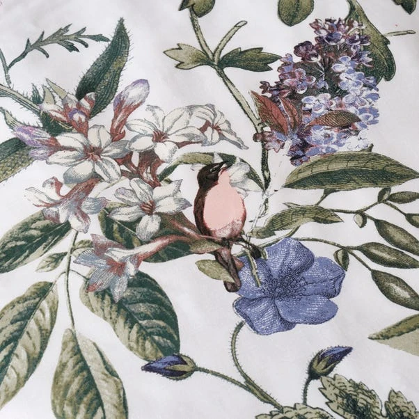 Birds sit amongst a beautiful array of florals to give this duvet cover set style and elegance. The front features a white backdrop with the reverse hosting a rich navy blue alternative. Crafted from a polycotton material, the set is easy to care for and is fully machine washable. The duvet cover set has been finished with a button closure which helps secure the cover around the duvet whilst in use.