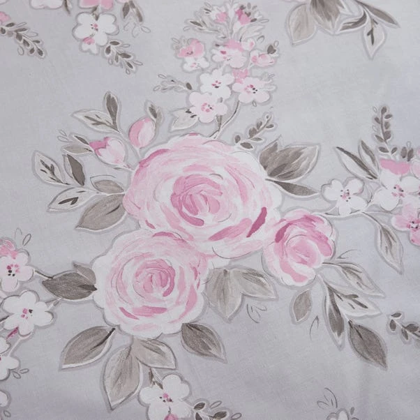 Fabricated from a soft polycotton blend, this duvet cover set comes complete with pillowcase(s) and features a beautiful grey and pink floral design for a classic touch to your bedroom. Available in a selection of sizes, this reversible Rosemont duvet set is machine washable for easy care and has matching items available in the range.