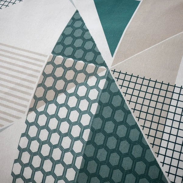 A bold green and blue geometric design fills the front of this duvet cover set. A small check design reverse means that you can switch up your bed style with ease. Crafted from a polycotton material, the set is easy to care for and is fully machine washable. The duvet cover set has been finished with a button closure which helps secure the cover around the duvet whilst in use.