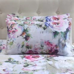 Avery Green Ava Floral Duck Egg 100% Cotton Sateen Duvet Cover And Pillowcase Set