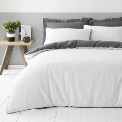 Dunelm Malvern Grey 180 Thread Count 100% Cotton Reversible Duvet Cover And Pillowcase Set