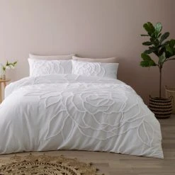 Dunelm Talia White Tufted 100% Cotton Duvet Cover And Pillowcase Set