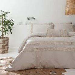 Pineapple Elephant Izmir Stone Grey Tassel 100% Cotton Duvet Cover And Pillowcase Set