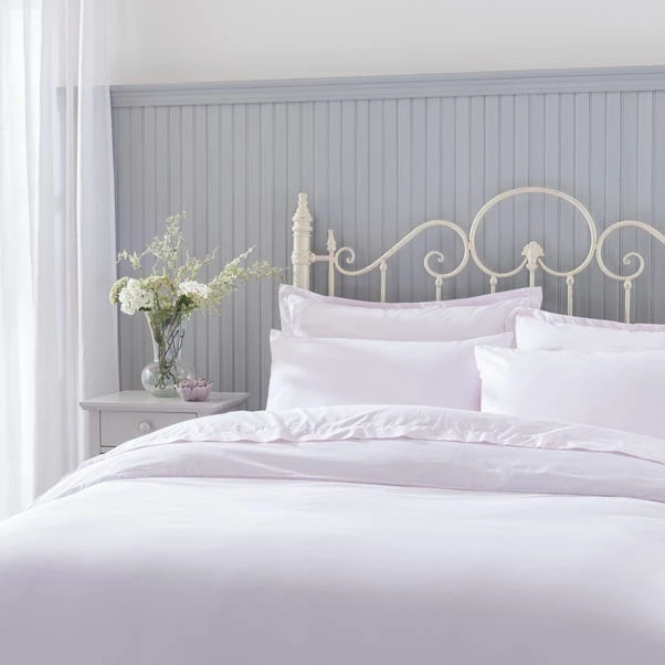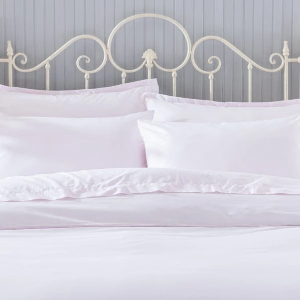 A light coloured Samira pink shade fills this beautiful duvet cover and pillowcase set, perfect for adding a subtle splash of colour in your bedroom. Crafted from a 200 thread count, 100% cotton material, this duvet cover set is easy to care for and soft to touch while being fully machine washable. The cover has been finished with a button fastening that helps secure the cover around the duvet while in use.