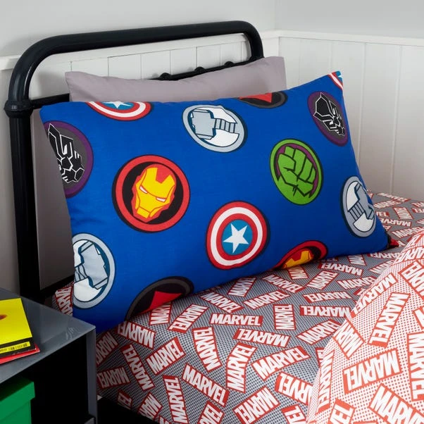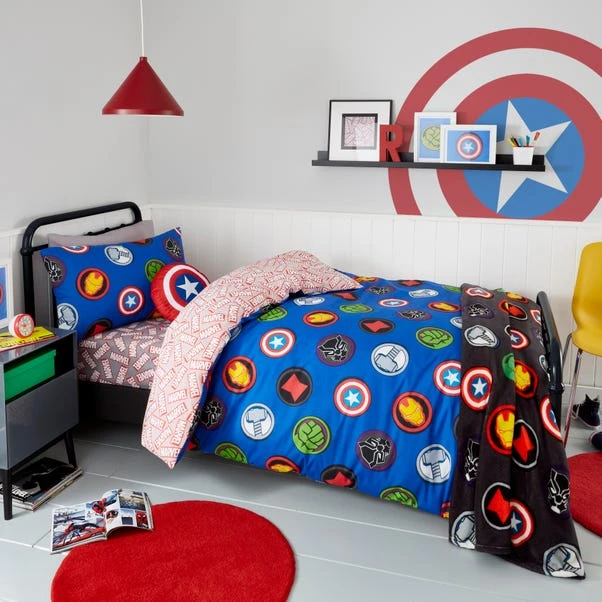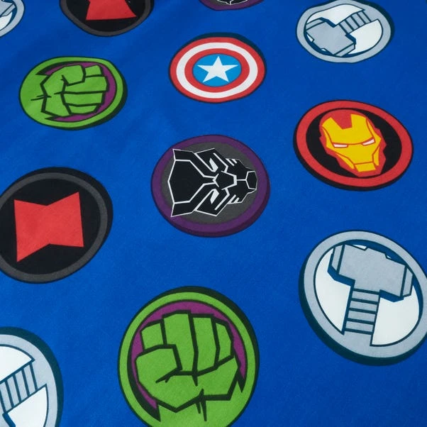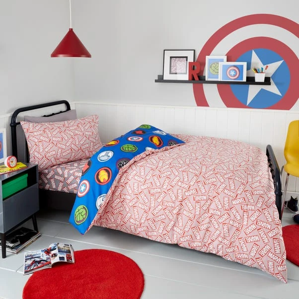 Featuring an array of Disney Marvel logos, this duvet cover set is perfect for your little aspiring avenger. The reverse hosts a marvel logo design which can be used for a quick style change when desired. Crafted from a polycotton material, the set is easy to care for and is fully machine washable. The duvet cover set has been finished with a button closure which helps secure the cover around the duvet whilst in use. Pair the duvet cover with the matching fitted sheet for a coordinated look.
