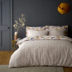 Dunelm Axel Leaf Ochre Duvet Cover And Pillowcase Set