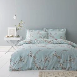 Dunelm Beautiful Birds Duck-Egg Duvet Cover And Pillowcase Set
