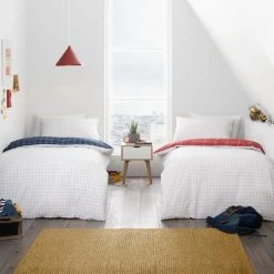Dunelm Checked 100% Cotton Reversible Duvet Cover And Pillowcase Twin Pack Set